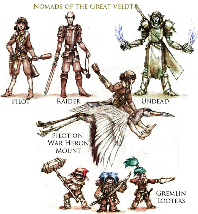 - Nomads of the Great Veldt includes 8 Miniatures to lead in any fantasy army. Each miniature features a great amount of detail for Dungeon-crawling, RPGs and table top war games